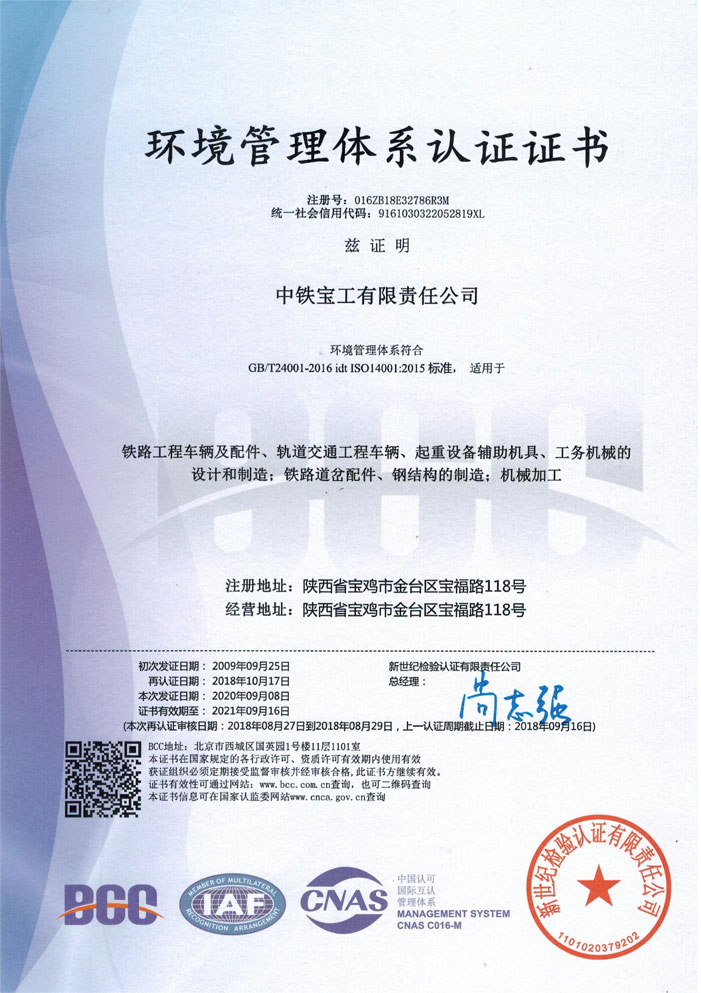 环境管理体系认证证书