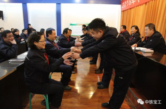 2018年1月29日下午,宝工公司五楼会议室内座无虚席,公司2018年师徒结对活动启动仪式在这里隆重举行,拉开了新一轮结对帮带活动的帷幕。公司领导班子成员、2017年度优秀师徒代表、2018年新结对师徒代表、各单位支部书记、工会主席等50余人参加仪式。启动仪式由公司副总经理张晓军主持。