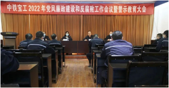 4月11日,宝工公司召开2022年党风廉政建设和反腐败工作会议暨警示教育大会,学习传达中铁宝桥集团党风廉政建设及反腐败工作会议暨警示教育大会精神,深化思想认识,分析形势任务,结合实际对宝工公司2022年党风廉政建设和反腐败工作进行了安排部署。公司领导班子成员,部分中层管理人员、“三管人员”30人参加会议。