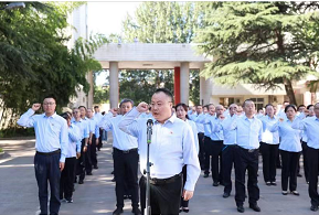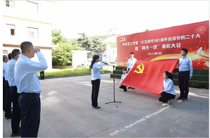 一、重温誓词。清晨,迎着朝阳,公司全体党员齐聚在一起,面向党旗、举起右拳,公司党委书记乔素兰领誓,再次重温入党誓词。