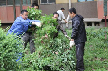 社区管理中心党支部积极响应宝鸡市创建全国文明城市的号召,进一步改善社区居民居住环境。利用 5月24日、25日两天双休日,组织社区全体员工对家属区河滩小区杂草进行了彻底清除。