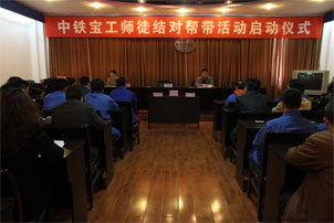 2013年3月4日下午,宝工公司在五楼会议室隆重举行了“师徒结对”帮带活动启动仪式,公司副总经理康晓峰、党委副书记、工会主席丁建强及活动推进领导小组成员、各单位支部书记、支会主席、团支部书记和部分师徒代表共计70多人参加了此次启动仪式。仪式由公司团委书记杨宁利主持。