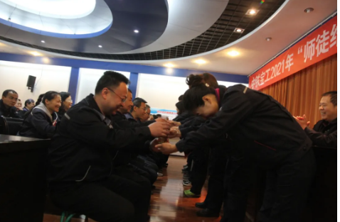 “师傅,请喝茶!”徒弟们手捧茶杯,满心喜悦地向师傅献上一杯热茶。这是2021年4月8日下午,在宝工公司2021年“师徒结对”帮带活动启动仪式上动人的一幕。